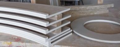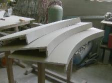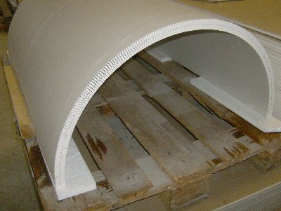 vorgefertigte Segmente eines Deckensegel mit Innenaufkantung als Faltung